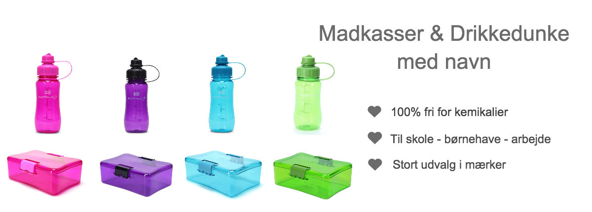 Hos navneparadis.dk går vi meget op i sikkerhed, sundhed og miljø, så vores varesortiment er nøje udvalgt og indeholder ikke giftig og skadelig kemi. Alle madkasser og drikkedunke med navn er helt uden BPA og kemi. Klean Kanteen, Brix, Dopper, sistema, Camelbak, Stanley, Eldodie details og Maileg er anerkendte producenter som sætter sikkerhed, bæredygtighed og funktionalitet højt.Navnesutter fra BIBS, NUK, Philips Avent, NIP, MAM, Babynova er 100% BPA frie og er blandt europas førende producenter på babyartikelmarkedet. Sutter, babykopper, sutteflasker, suttekæder og tilbehør fra disse leverandører er EU godkendte og indeholder ingen kemi eller plastblødgørende midler. Navn som er graveret ind i produkterne kan ikke slides væk uanset brug, vask og kogninger.