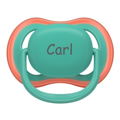 Navnet er indgraveret på sutten og kan aldrig slides eller vaskes væk
