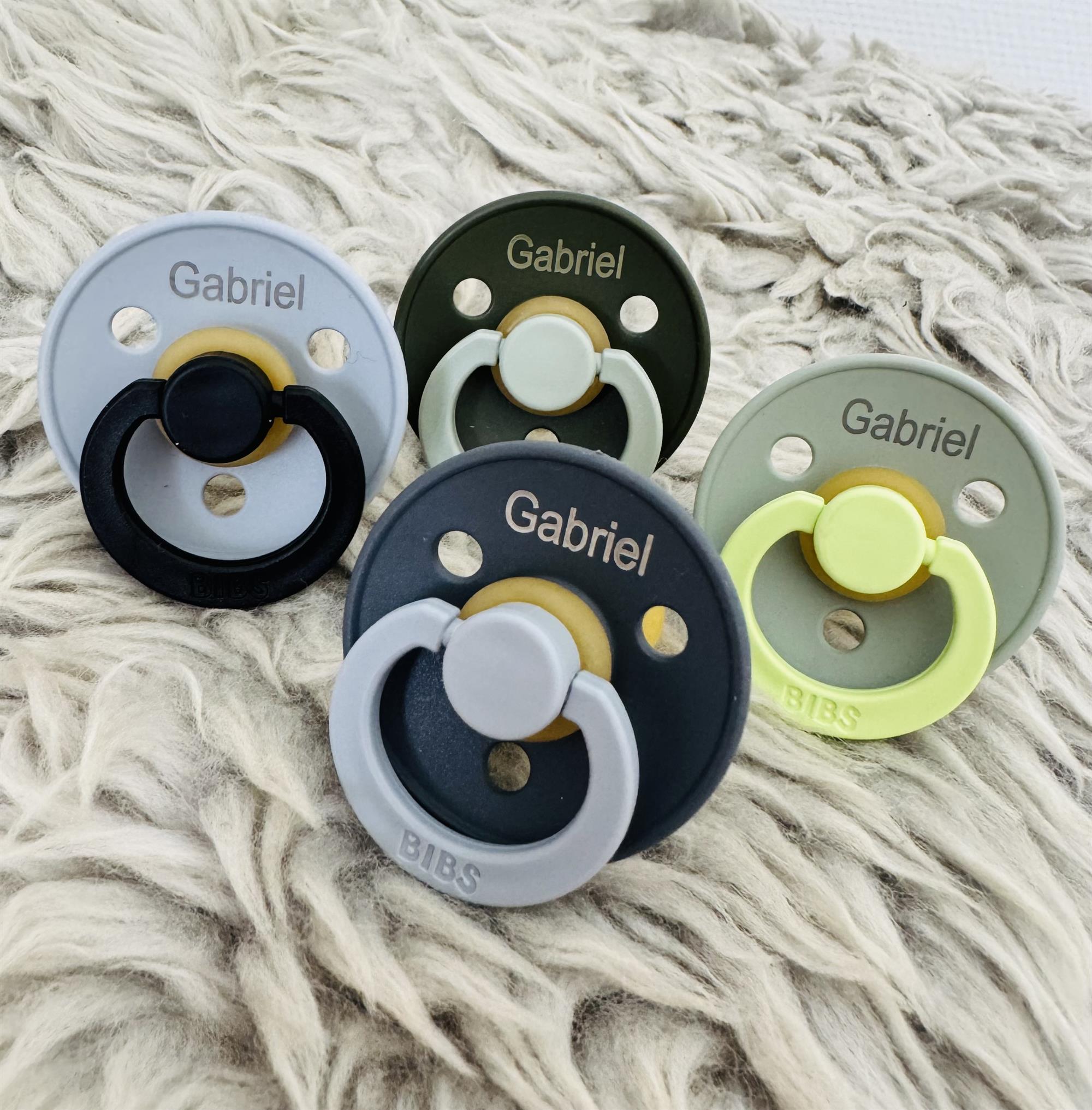 Navnet indgraveres på forsiden ( som ses når barnet har sutten i munden) eller på bagsiden ( som vender ind mod munden)
