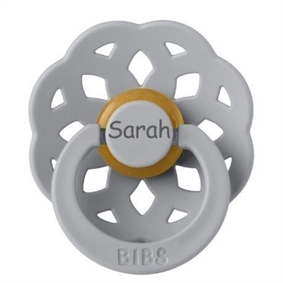 Bibs har bevægelig ring og kan fastgøres i suttesnore til sutter med ring.