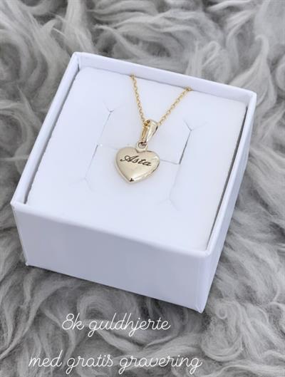 Hjerte 8k guldvedhæng 8 mm med gratis gravering