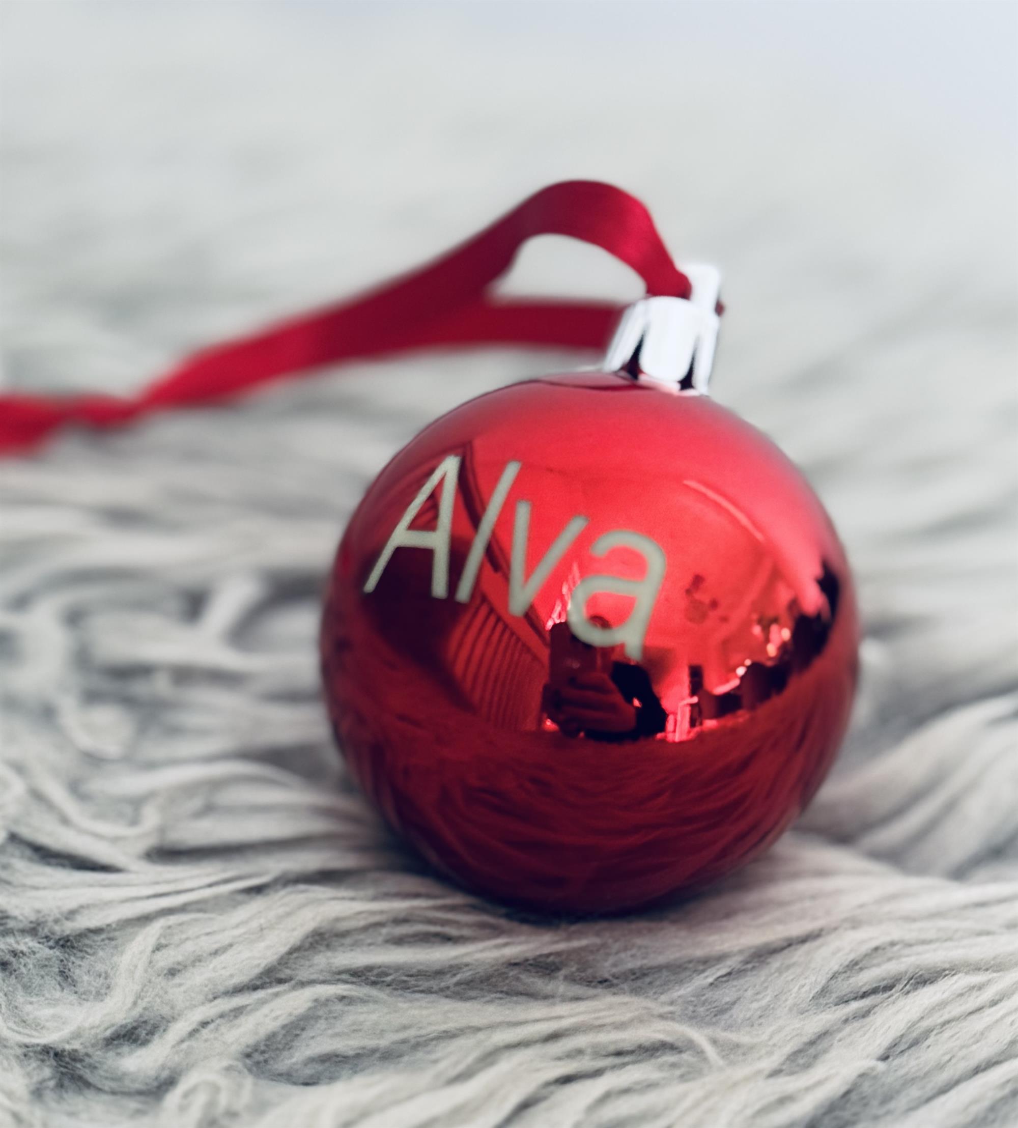 Der er plads til 2 linjer på julekuglen og du kan selv vælge skrifttype på denne.