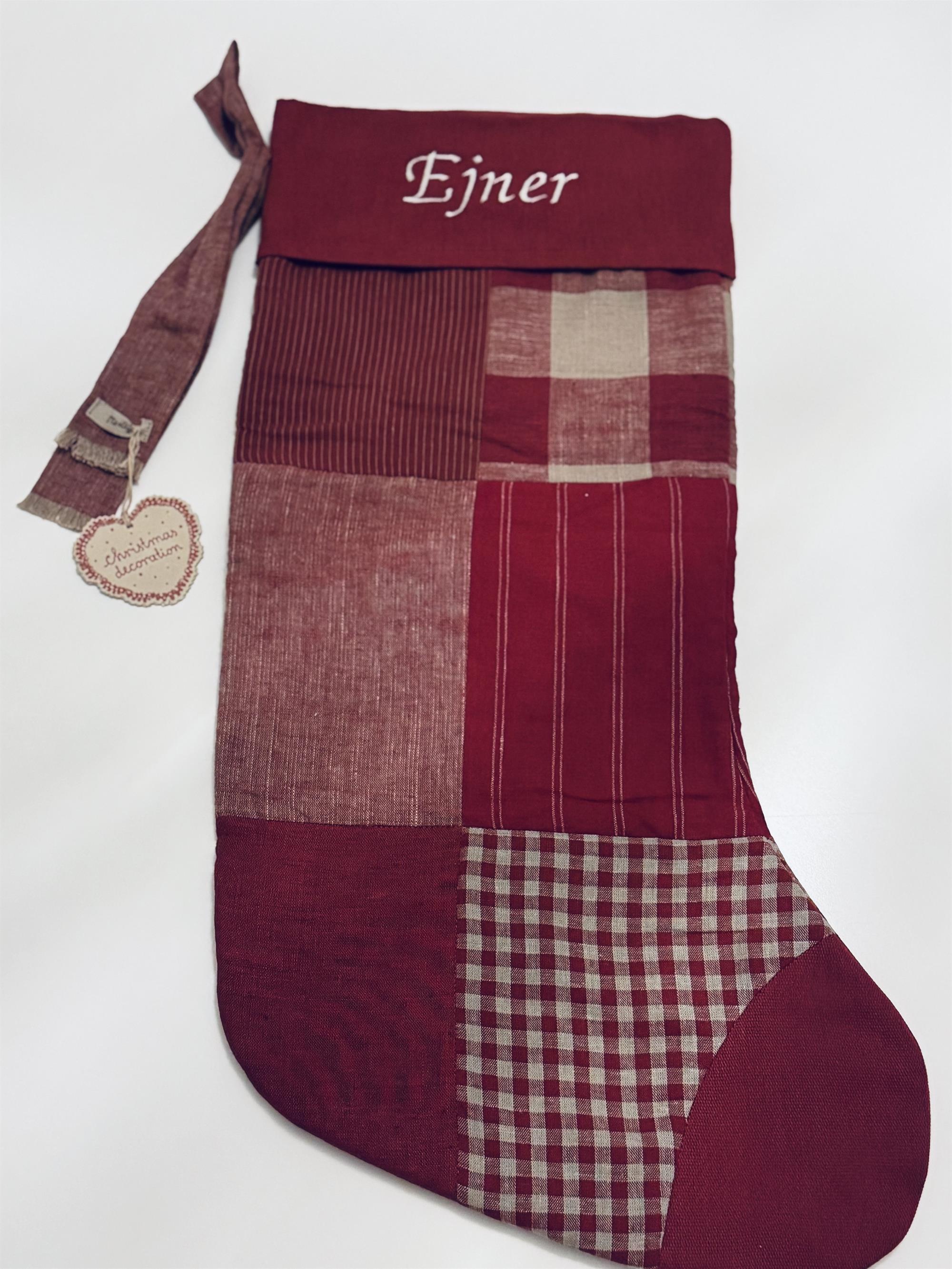 Julesokken skaber julestemning overalt, hvor du placerer den. Med navn broderet og din egen valgte farve på broderingstråden, får du en helt særlig og personlig julesok.