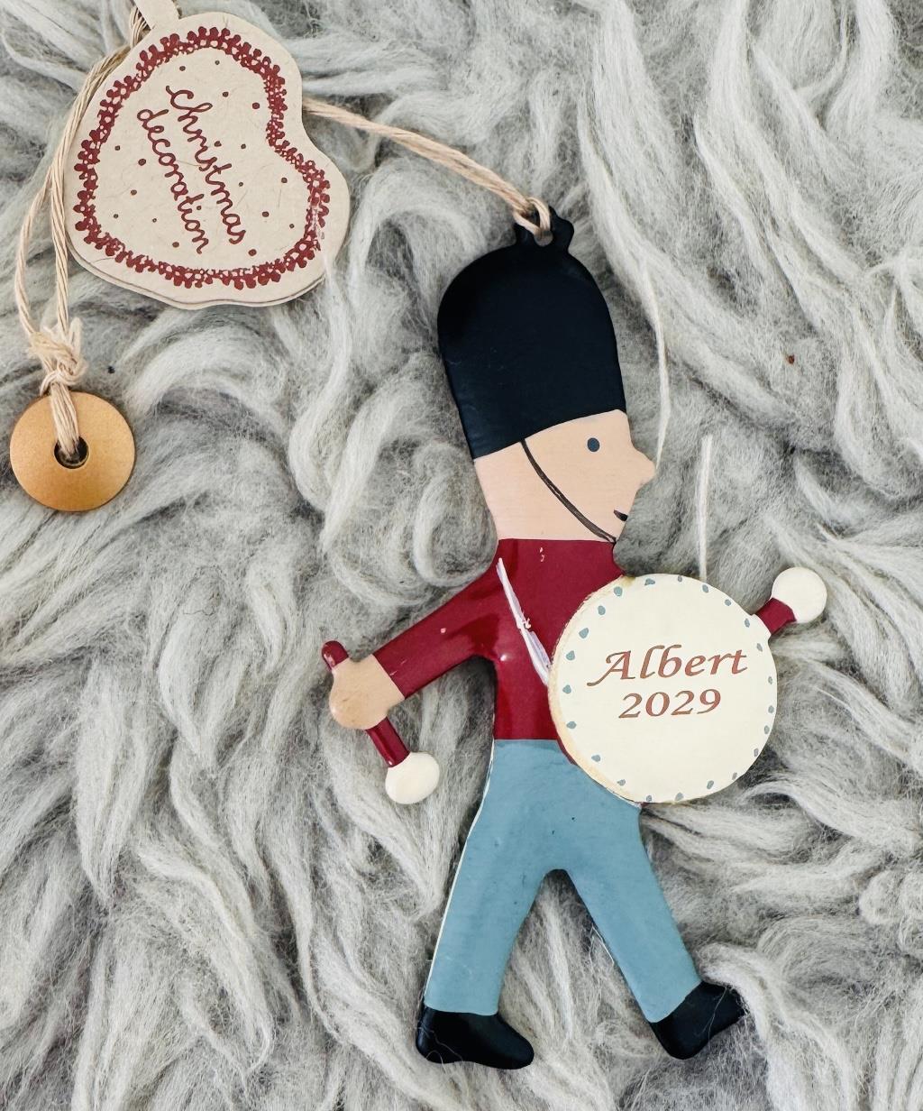 Maileg metalophæng, tinsoldat med navn og dato indgraveret