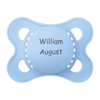 MAM sut str 1 med navn symmetrisk silikone lyseblå