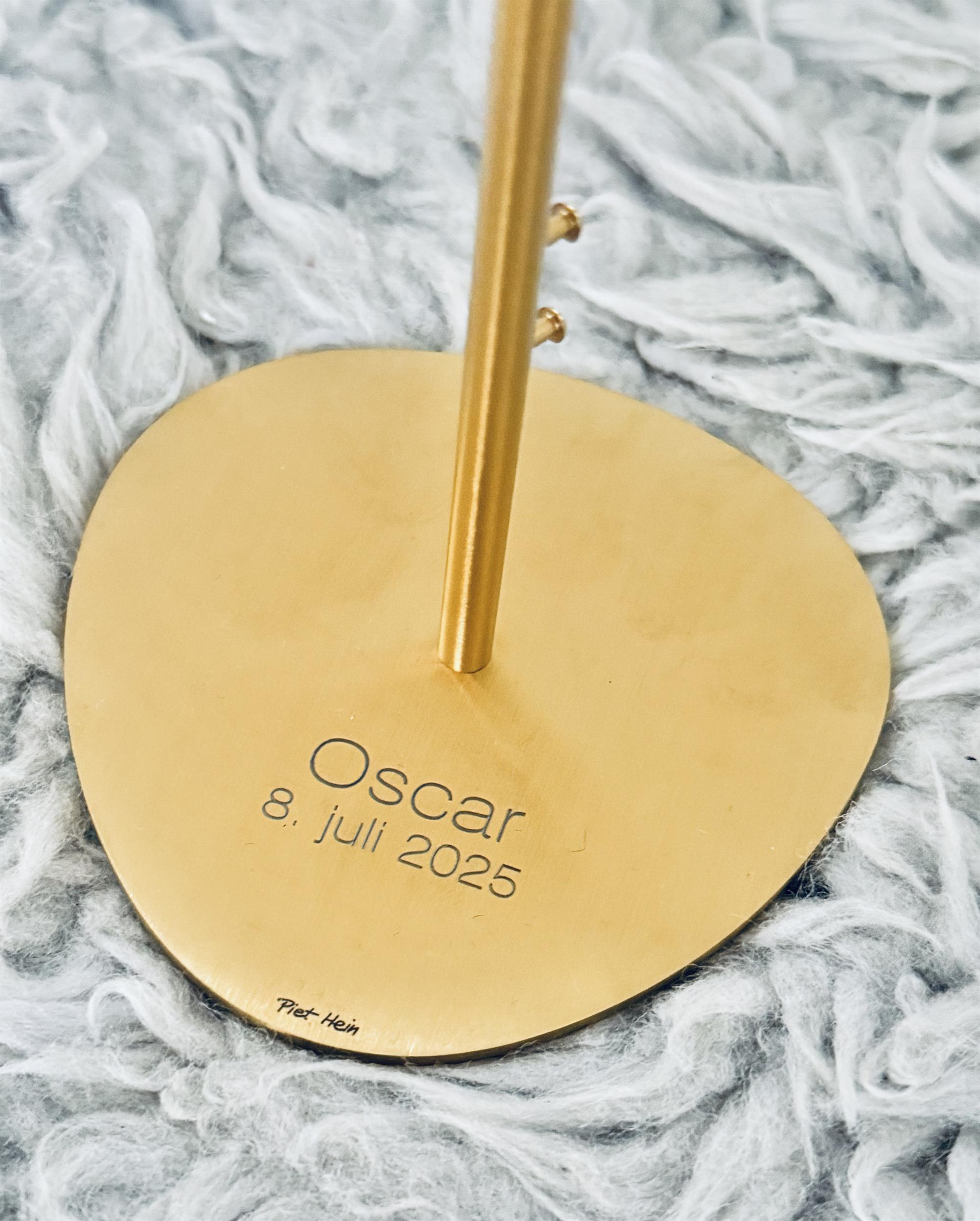PIET HEIN flagstang 35 cm i messing med gratis gravering på foden