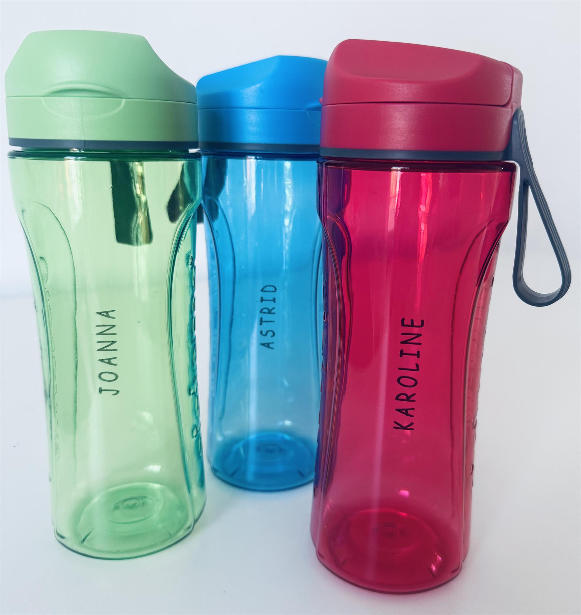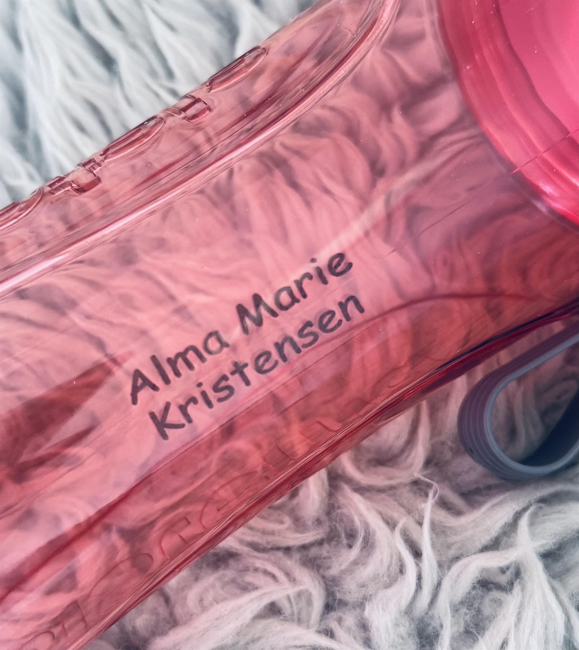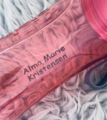 Drikkedunken med navn kan indeholde 600ml og passer derfor perfekt til skole og sport, voksne og børn.